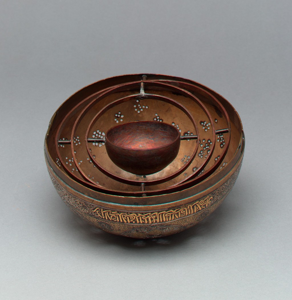 هذه مبخرة نحاسيّة صنعها صنّاع دمشقيّون في القرن 13، وتُظهر القدرة العربية على إبداع أفكار مبتكرة في الهندسة الميكانيكية. وتتميّز بآليّة معقّدة تسمح للفحم المشتعل بالبقاء مستقرّاً حتى ولو تأرجحت أو سقطت الكرة. وتعتمد هذه التقنية على نظام “الجُنْبُل”، الذي اختُرع على يد العرب في القرن التاسع واستُخدم بعدها في الملاحة البحرية.