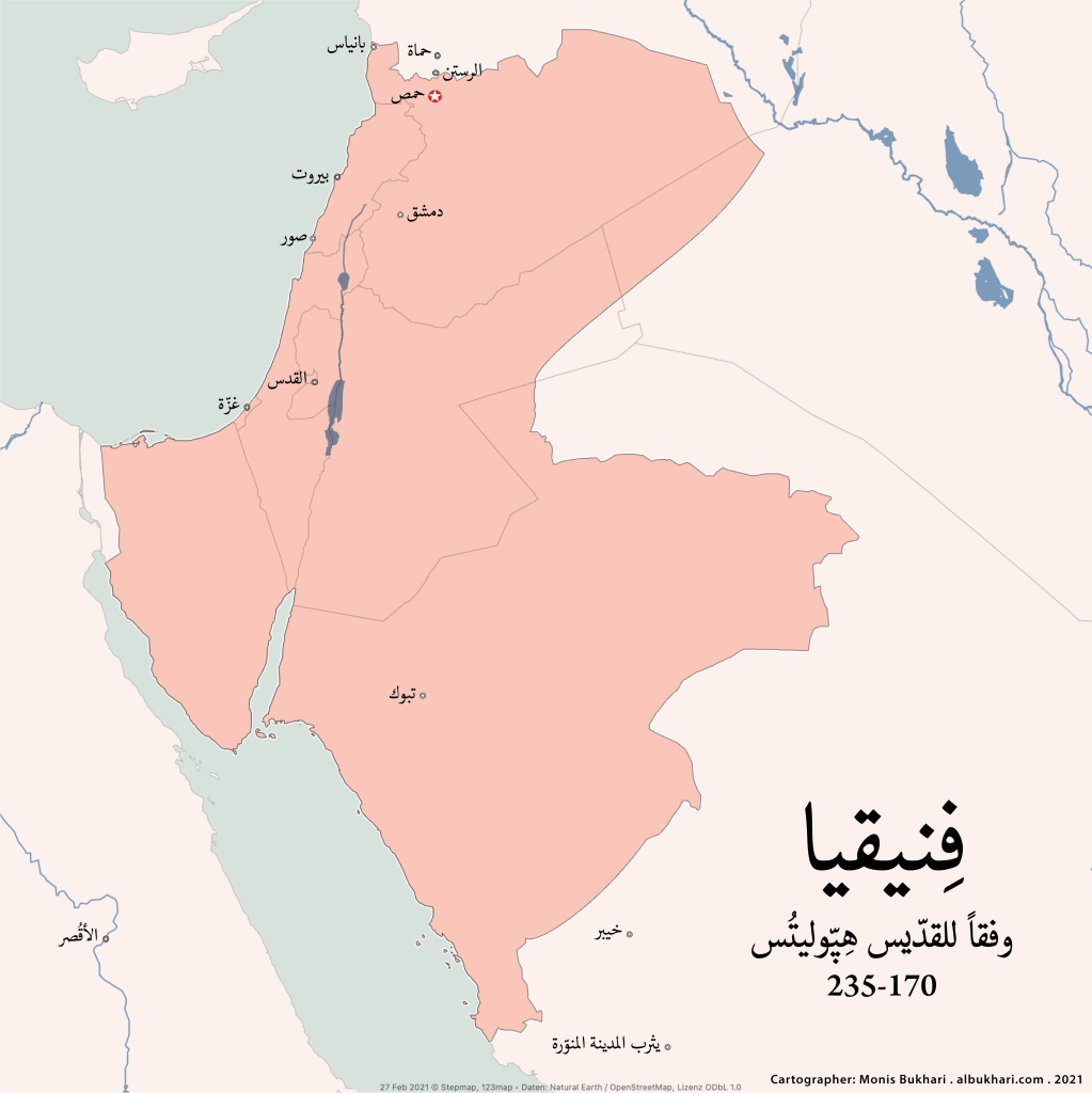 الخارطة هي خارطة فنيقيا في القرنين الثاني والثالث، رسمتها وفقاً لكتابات القدّيس هپّوليتُس (هيبوليتوس الرومي)، وهي ذاتها مملكة حمص، إميسان الغربية، إميسه، التي تحالفت مع الرومان ثمّ صارت بعدها جزء من الإمبراطورية.